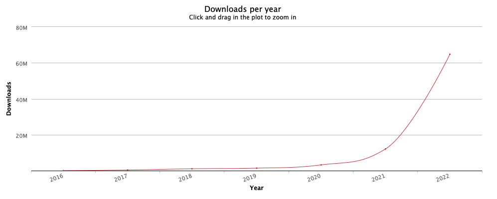 pnpm було завантажено більш ніж в 5 разів більше у 2022 р оці, ніж у 2021 році: